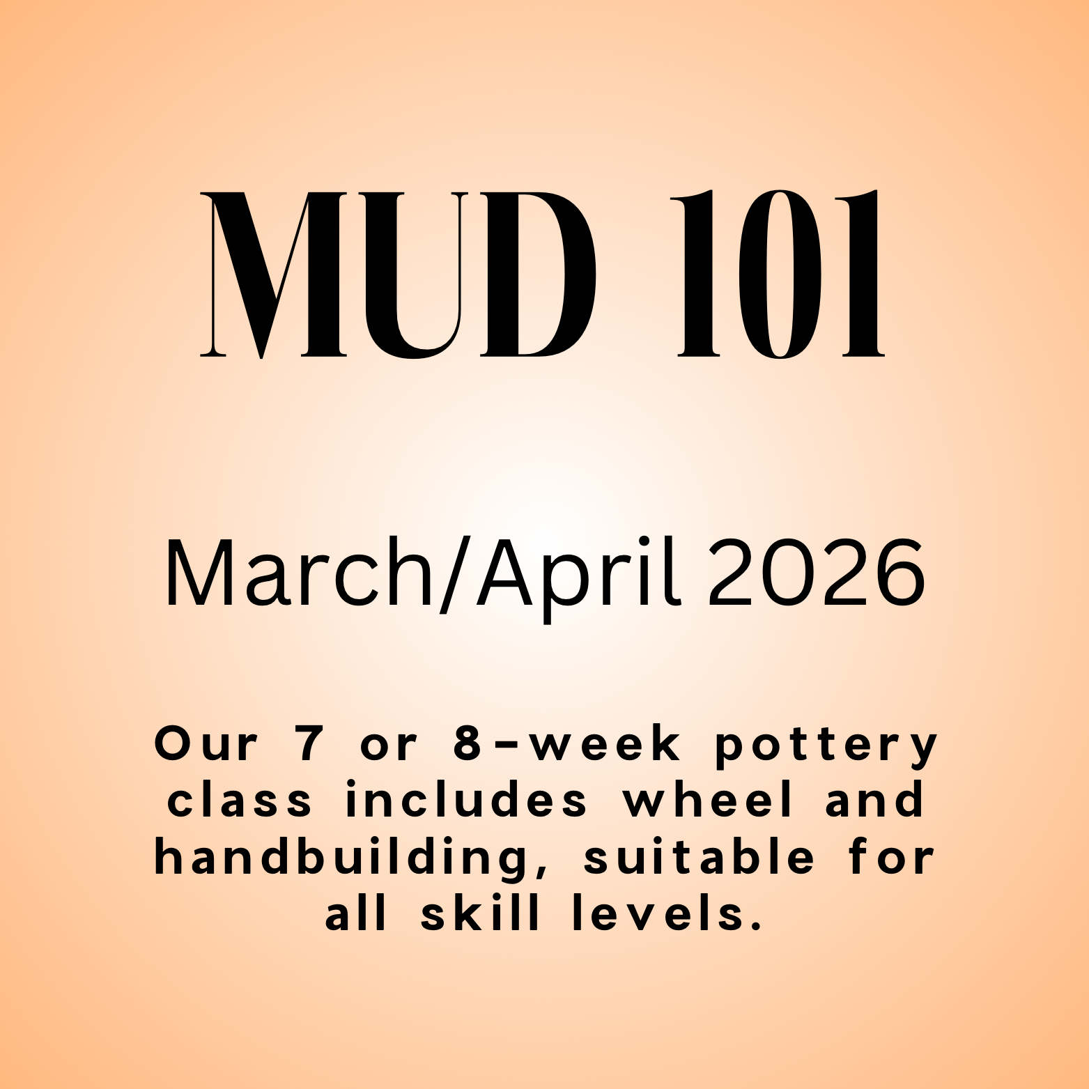 MUD 101: MARCH/APRIL 2026 Pottery Class